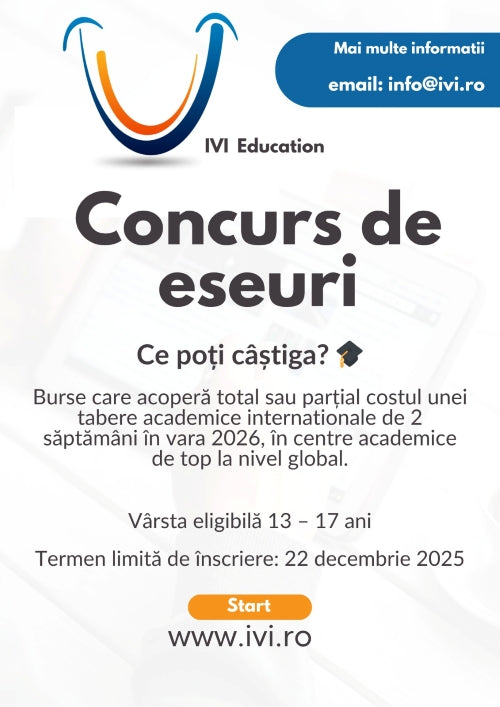 Participă la una dintre cele mai prestigioase competiții internaționale de eseuri dedicate elevilor de 13 – 18 ani și poți câștiga burse pentru tabere academice de elită, masterclass-uri exclusive și recunoaștere internațională.
